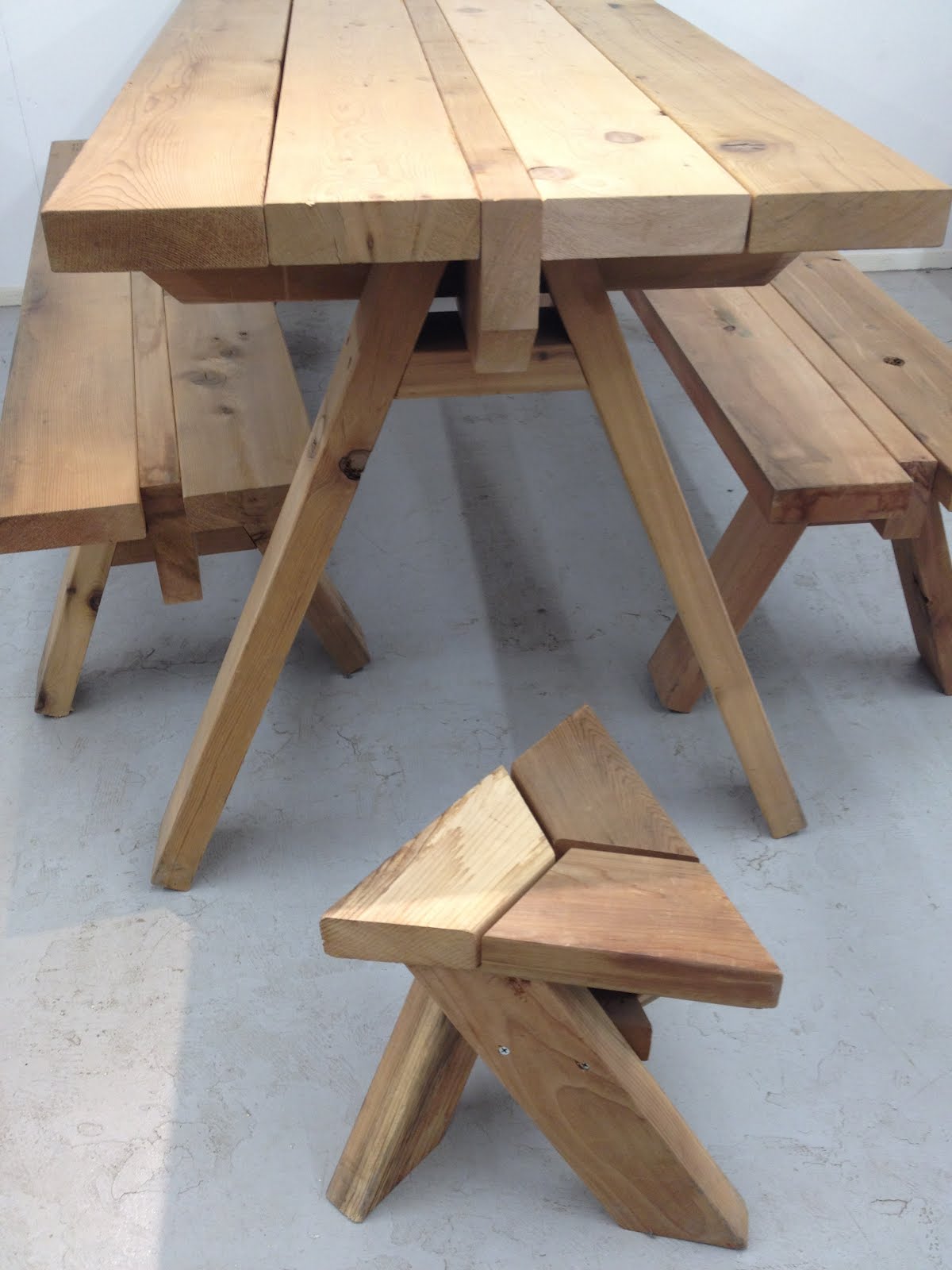Right: Handcrafted wooden tables at the headquarters of the Ishinomaki 2.0 project, located across the street from the kimono shop