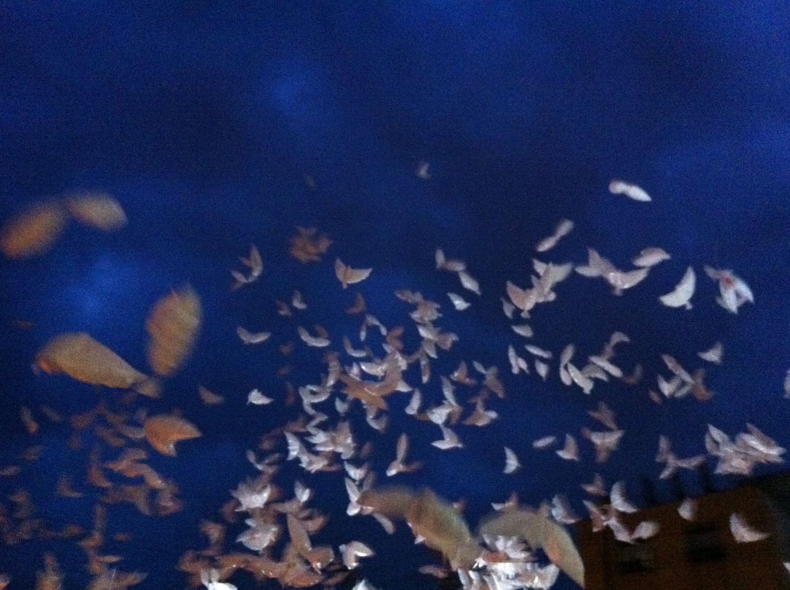 After finishing up our afternoon volunteer work, we headed together with the kimono shop staff and volunteers to attend the evening candlelight ceremony. Everyone was invited to write messages on dove-shaped balloons, which would then be sent upward into the sky. “On this day one year ago, many of us were unable even to say goodbye to our loved ones,” the event organizer said softly just before the balloons were released. “With these balloons, we send the thoughts and words that we were never able to say to them.”